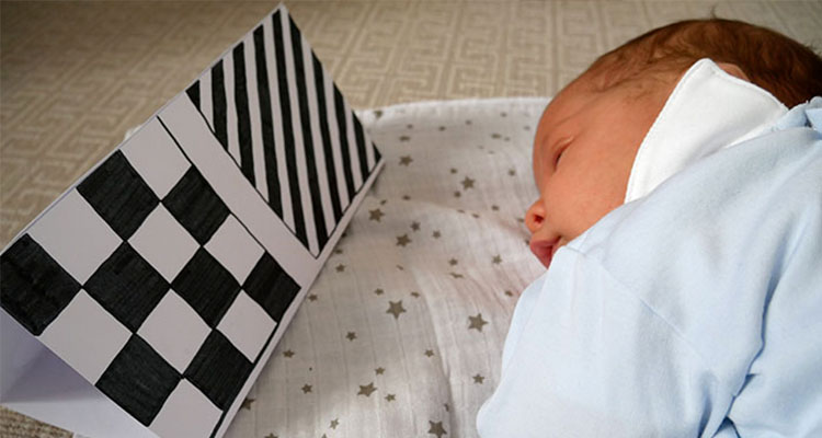 新生儿视力非常模糊,只能看清20–30厘米以内的物体。他们对高对比度例如黑和白的颜色最敏感,而对淡色或复杂图像几乎无反应。黑白强烈对比图形能更好地刺激视神经与促进大脑视觉皮层的发育。