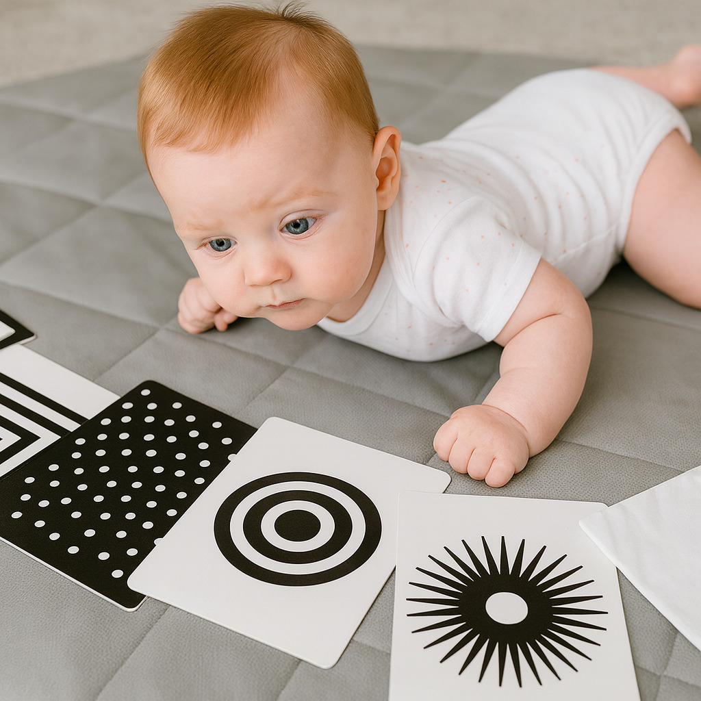 促进婴儿视觉发育; 辅助“趴趴时间”(Tummy Time),锻炼颈部与上身肌肉; 让哥哥姐姐参与与新生儿的互动,共享家庭时光; 为亲子间的对话、讲述与探索创造机会; 简而言之,这不仅是一套图卡,更是一份陪伴宝宝成长、激发感官的温柔礼物。
