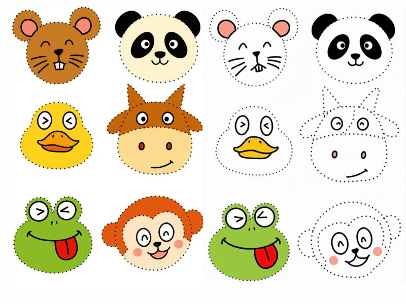 本素材共6页,36个卡通形象,适用于3–7岁幼儿、学前儿童。