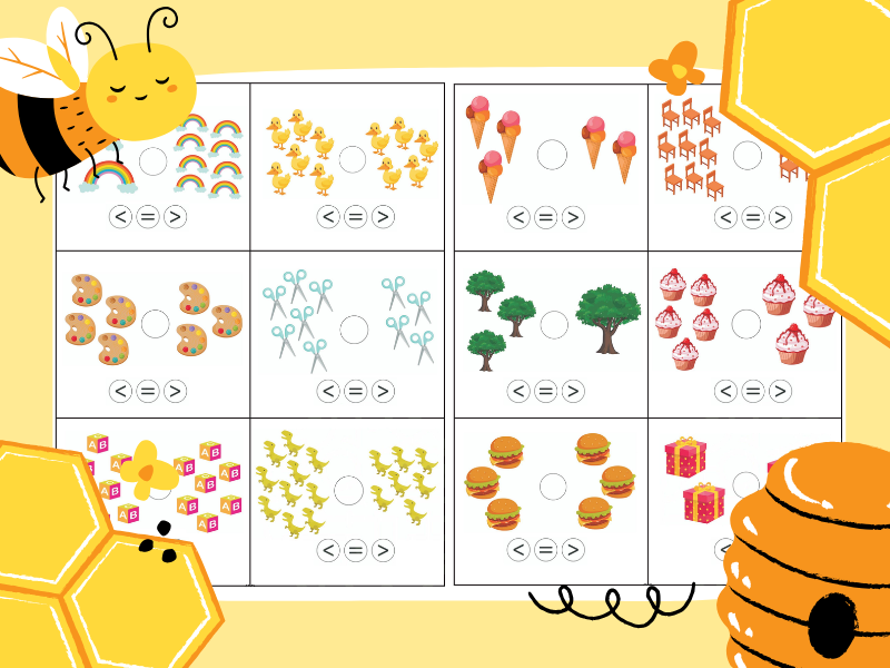 这是一套适合 3-6岁儿童的数学启蒙练习册,内容为数量比较。通过让孩子观察两组图片并判断“哪边更多 / 哪边更少 / 是否一样多”,帮助孩子在轻松有趣的情境中建立数量概念,为后续加减法和数感培养打下良好基础。