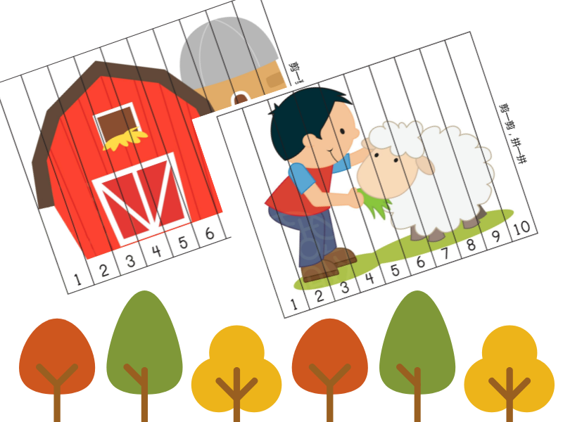 本份素材将剪纸练习与数字排序/拼图能力结合起来。孩子需要先沿着虚线剪下碎片,再根据每块碎片上的数字 1-2-3-4… 的大小顺序,将它们重新拼回完整图案。本素材共4页,无水印,打印后即可使用。