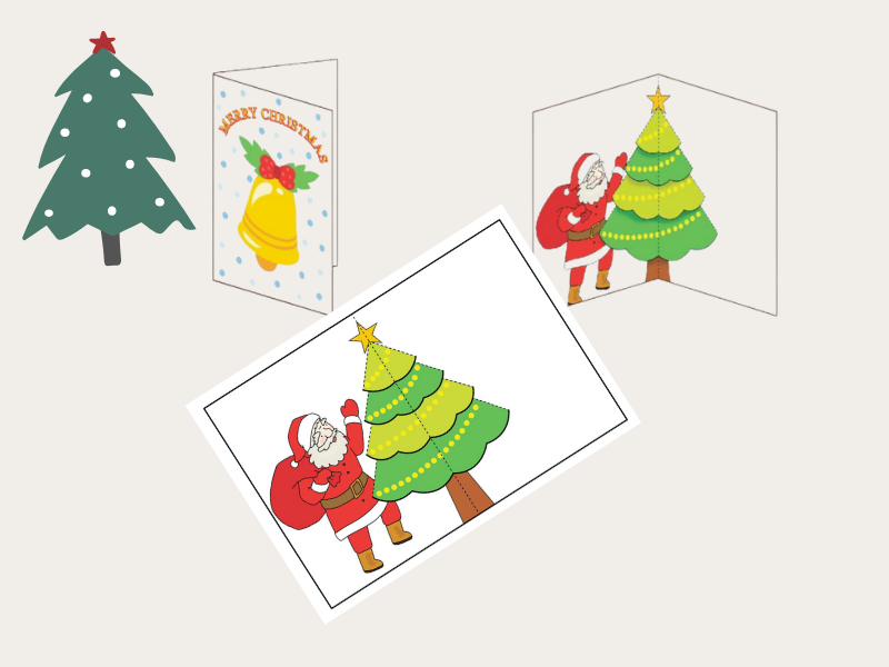 孩子通过剪、折、粘的步骤,通过本素材,将平面的纸张制作成立体打开效果的圣诞主题贺卡。卡片打开时,内部的圣诞树、礼物、雪花等元素会以立体形式呈现,具有仪式感和惊喜效果。